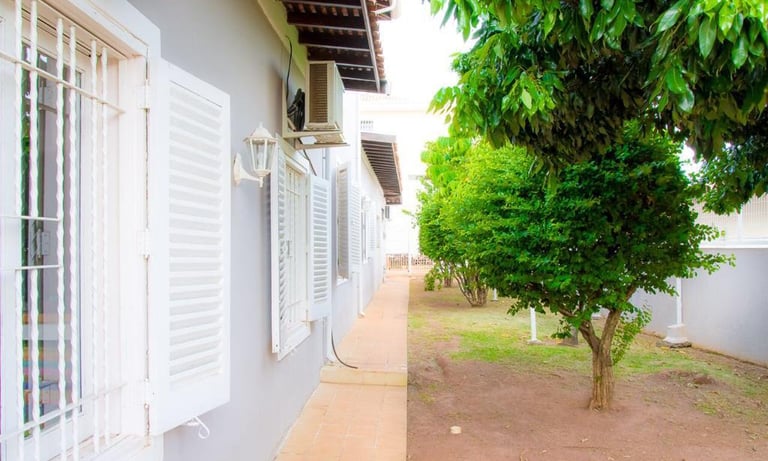 Ampla área verde com árvores frutíferas